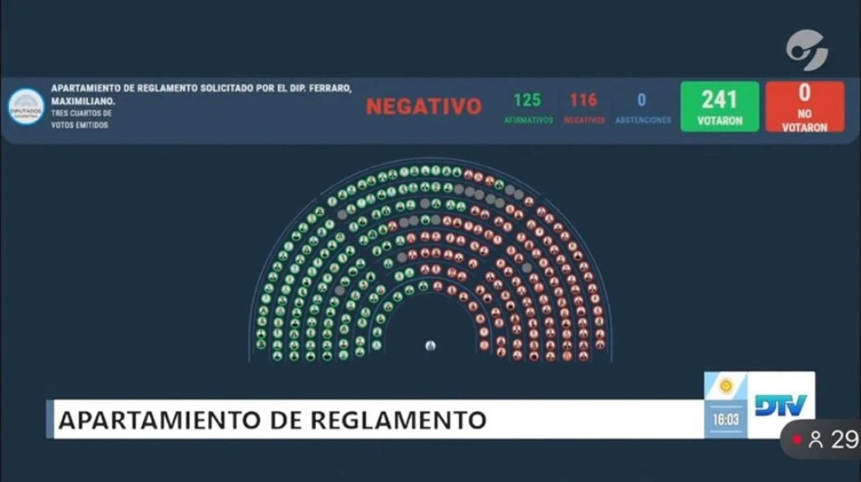Sin embargo, la votación arrojó 125 votos afirmativos y 116 negativos. Aunque la mayoría simple acompañó la iniciativa, no se alcanzó el umbral requerido de tres cuartas partes de los diputados presentes, condición indispensable debido a la falta de dictamen previo de comisión.